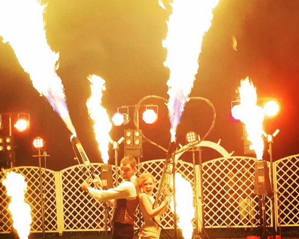 - Фаер шоу - Танец с огнем станет более захватывающим, если внего добавить настоящий огнемет! Особенно если огнемётов аж целых две штуки. Правильно вставив в программу фаер шоу и ваши зрители будут в восторге от увиденного.