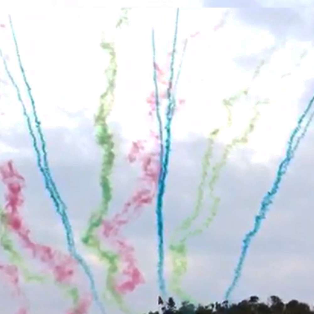 Дневная батарея салютов 1,2"х100 Цветной дым, треск, свист - веерные залпы