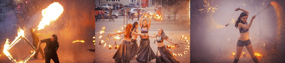 Шоу огня - это красочный танец заряженный: искрами, эмоциями, музыкой и все это под фееричные залпы праздничного фейерверка. Искры от пиротехнических фонтанов, грохот выстрелов батарей салютов, звездки разноцветных бураков, трещащих комет и мощные разрывы высотных шаров в ночном небе - вот все это, пиротехническое дополнение к шоу огня, которое Вы можете заказать в пиротехнической компании Праздничный салют. Особенно интересно в любом шоу огня смотрятся Факиры. Факиры - это артисты, которые выдувают огонь. Выдувание огня в фаер шоу, заключается в дыхании специальным горящим составом изо рта на открытый источник пламени, например факел. Дыхание огнем является самым экстремальным номером театра огня и требует длительного обучения и наличия помощника обученного технике безопасности.