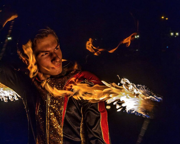 Номер под позитивный и энергичный рок. Довольно универсальное шоу, которое подходит под мероприятие любого масштаба. Яркое и динамичное завершение праздника. В этом шоу один из самых опытных артистов покажет Вам очень интересную и сложную технику владения огненным реквизитом. Вы непременно останетесь довольны!