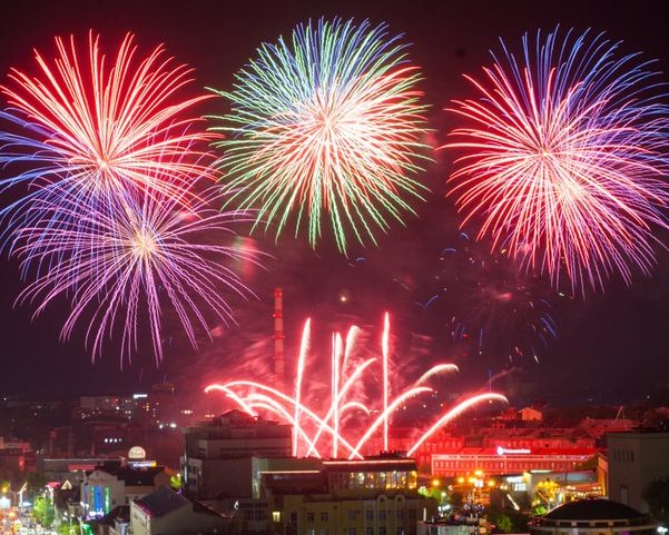 Городской салют подойдет не только для городских мероприятий, таких как день Победы, День поселка, День города, он также идеально подойдет для завершения праздничных мероприятий, таких как Корпоратив, Свадьба или День рождения. В салюте использованы только высотные шары крупного калибра до 100мм. в диаметре, с высотой разрыва 110-120 метров. В конце салюта мощный финал из более чем 40 золотых парчовых залпов фейерверков. В стоимость уже включено, транспортные расходы по Свердловской области, а также согласование проведения фейерверка с Администрацией города, МЧС и МВД.