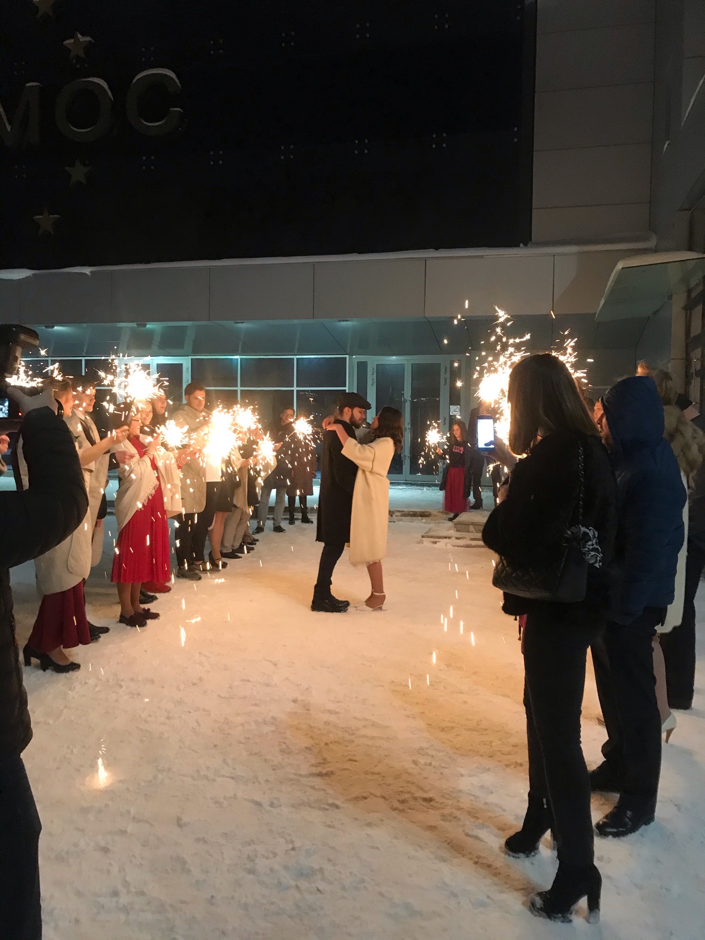 Дорожку из фонтанов можно заменить большими бенгальскими огнями, с временем горения 4-6 минут. Смотрится очень ярко