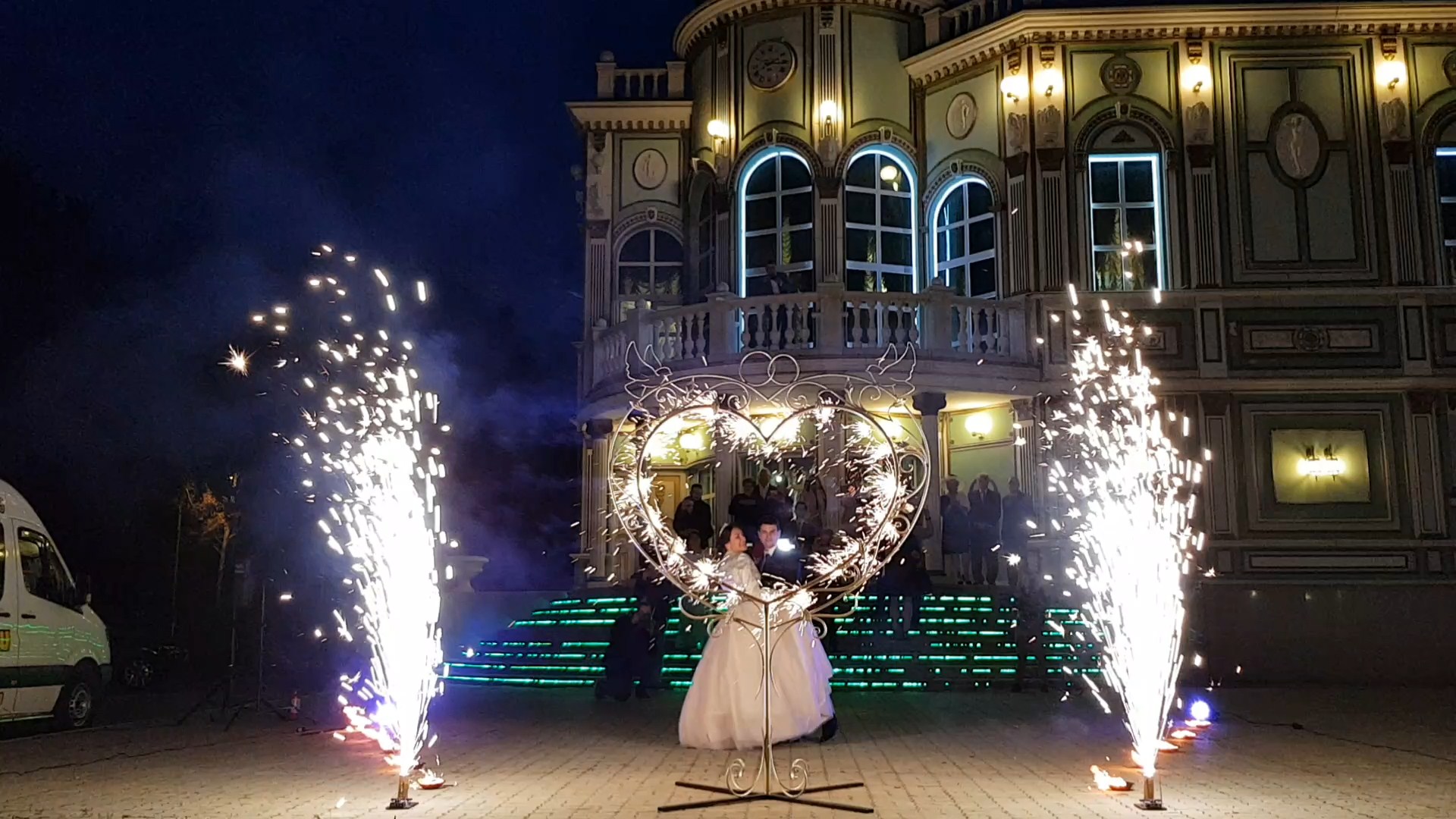 Оно в два раза больше чем обычные огненные сердца, но устанавливается ниже, что позволяет фотографу делать фотографии "через сердце", а свадебное оформление только придает красоты вашим фотографиям.