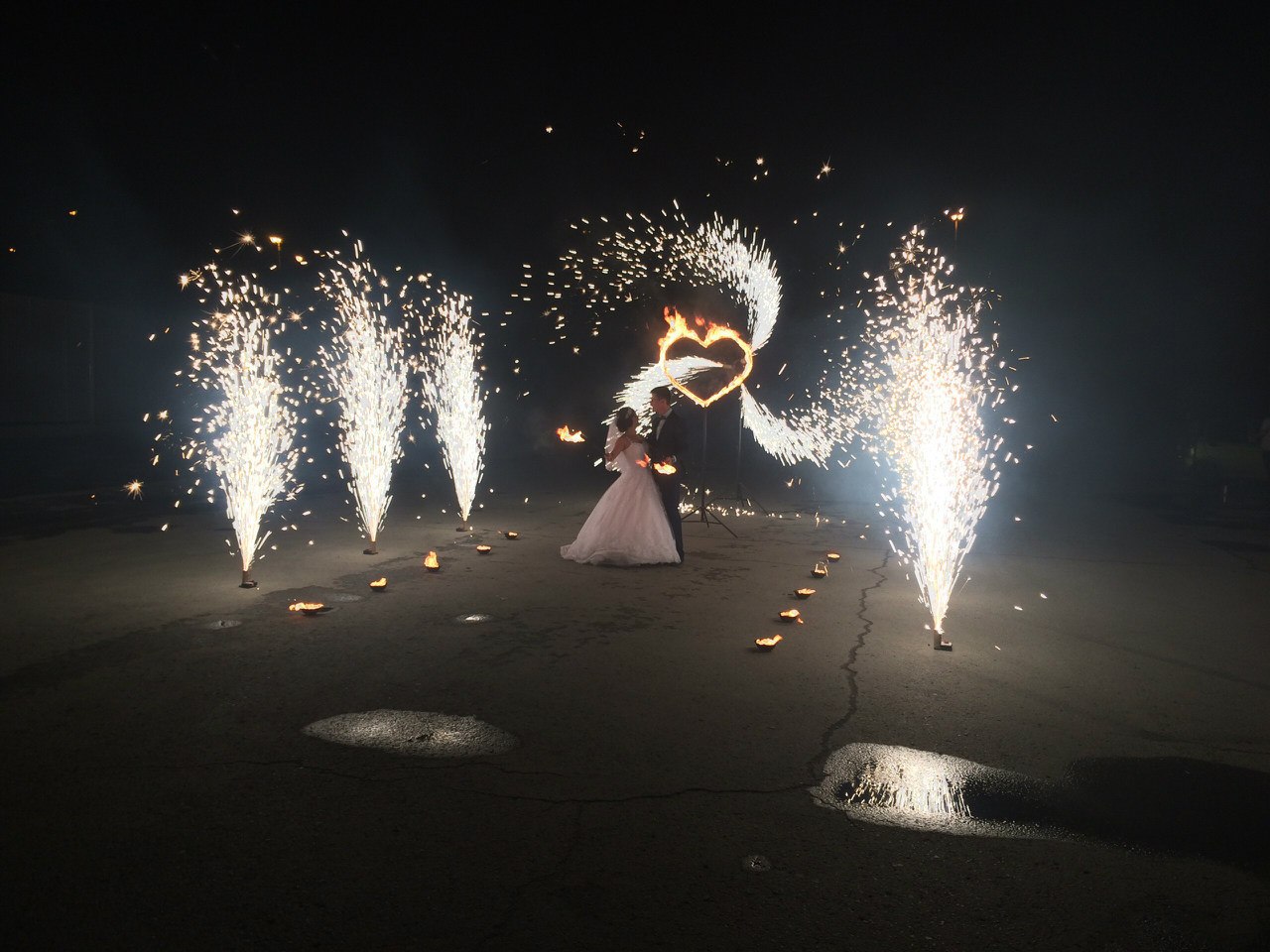 Я мечтала, что мой свадебный день закончится именно так: мы поджигаем сердце, вокруг нас много огней, фонтанов, брызг и искр, а все фаер-действие завершает праздничный салют...